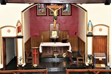 The Roman Catholic congregation in Whitchurch began in 1855 under the Rev. Fathers McCarte and Kenny, meeting at a private house in Green End. The present chapel in Claypit Street opened for worship on Whit Monday 1878, the preacher the Very Rev. Canon Cholmondeley. A simple Gothic school-chapel of 1878 by James O’Byrne. Hemmed in on both sides, the constraints of the elongated plot required the interior to be top-lit. There is good post-war stained glass in the sanctuary. The presbytery is one of a pair of late Georgian town houses. In June 1876 James O’Byrne drew up a perspective view of the ‘Proposed New School and Presbytery, Whitchurch, Cheshire’. Sufficient funds were raised for building to start on 28 August 1877 but the building which opened on Whit Monday 1878 was, but half of the proposal set out in O’Byrne’s June 1876 drawing. The presbytery was not built at this time, and when the Revd T. Bolton, the first resident priest, arrived in 1892 he lived at no. 11 St John’s Street. In 1902 the mission was left the late- eighteenth century properties at Nos. 17 and 19 Claypit Street opposite the church (No. 17 remains the presbytery, while No. 19 was sold in 1996) The original intention that the church should also serve as a schoolroom was evidently never realised, but screens to divide the space remained well into the twentieth century. The original narthex was lost in 1914 when the gallery was built. Another early alteration was the installation in 1906 of a new altar and reredos. The church was first reordered in 1969, when the 1906 reredos was removed, and the coeval altar brought forward. A pulpit of 1904 (erected in memory of Fr Bolton) and the communion rails were removed at this time or possibly later, and the door opening between the sanctuary and the west passage infilled. During a second re-ordering in 1985 panelling was installed in the sanctuary and the 1906 altar moved to its current position beneath the chancel arch. In one of these reordering's the font was moved from the back of the church to its current position near the chancel arch. The organ came from a Methodist chapel and was installed in the gallery in the early 1990s. A plain brick-built, slate-roofed mid-Victorian school-chapel building (although never used as a school). Of rectangular plan form, the building’s street frontage has a central door with three lancets over and a bellcote. Envisaging that the presbytery would abut its eastern flank, the architect lit the interior with a long-glazed lantern on the ridge. Inside, the lantern casts generous light on the dark stained trusses and purlins and whitewashed ceiling plaster and walls. The nave is accessed via the enclosed area beneath the organ gallery. The main space has timber pews on either side of a central alley. The (ritual) east wall of the nave has three segmental headed openings, the larger central one giving on to the sanctuary, the narrower flanking doors leading to the confessional and sacristy. The sanctuary is lit by three high level lancets with stained glass windows, by Patrick Pollen (1928-2010), pupil of Evie Hone and great-grandson of John Hungerford Pollen; they were given after World War II by the Crossley family of Combermere Abbey. The sanctuary has been reordered at least twice and does not contain furnishings of historic interest. The Stations of the Cross in the nave may be early or original.